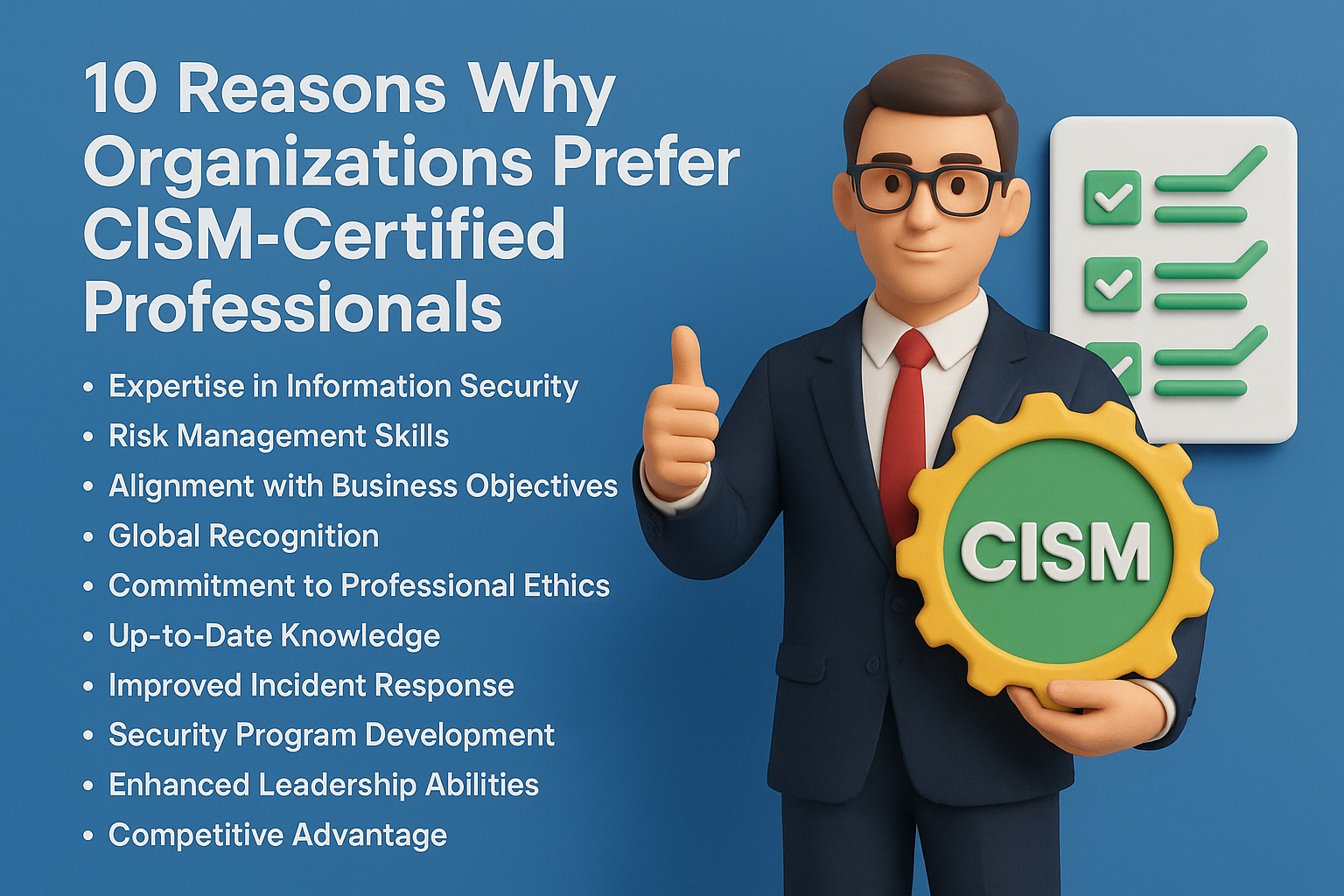 In today’s digital era, cybersecurity has become a top business priority. Organizations are no longer just seeking IT experts—they want professionals who understand both technology and business risk. That’s where CISM Certification (Certified Information Security Manager) stands out. Offered by ISACA, CISM is globally recognized as one of the leading credentials for information security management. Let’s explore the top 10 reasons why organizations prefer hiring CISM-certified professionals.